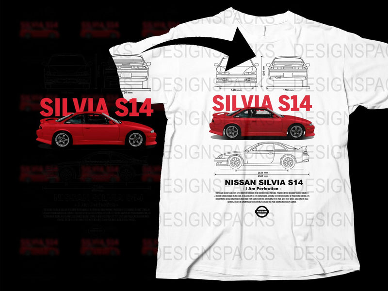 Nissan Silvia S14 Blueprint With Dimensions Graphic Png Digital Download