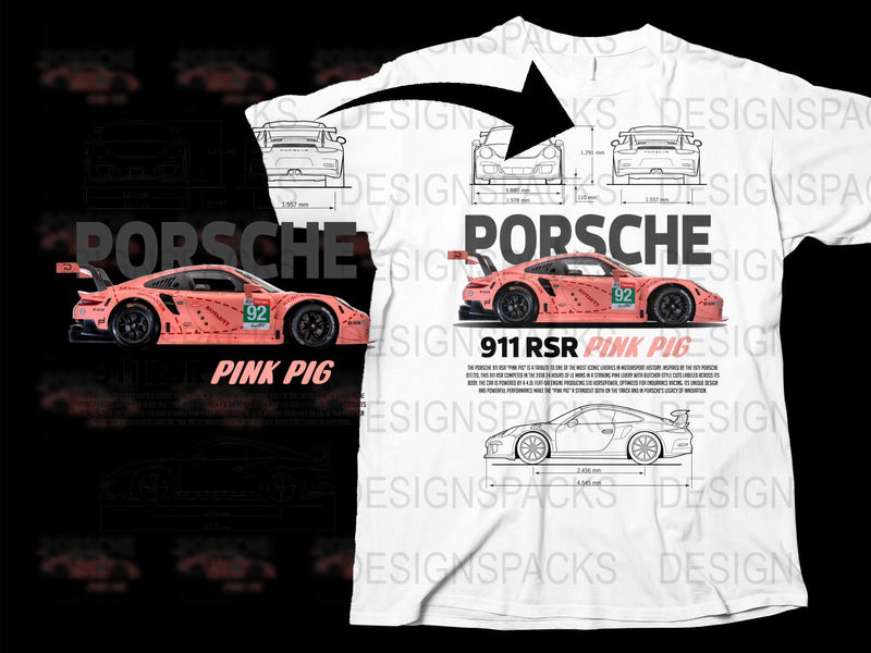 Porsche 911 RSR Pink Pig Iconic Livery Dimensions Png Digital Download
