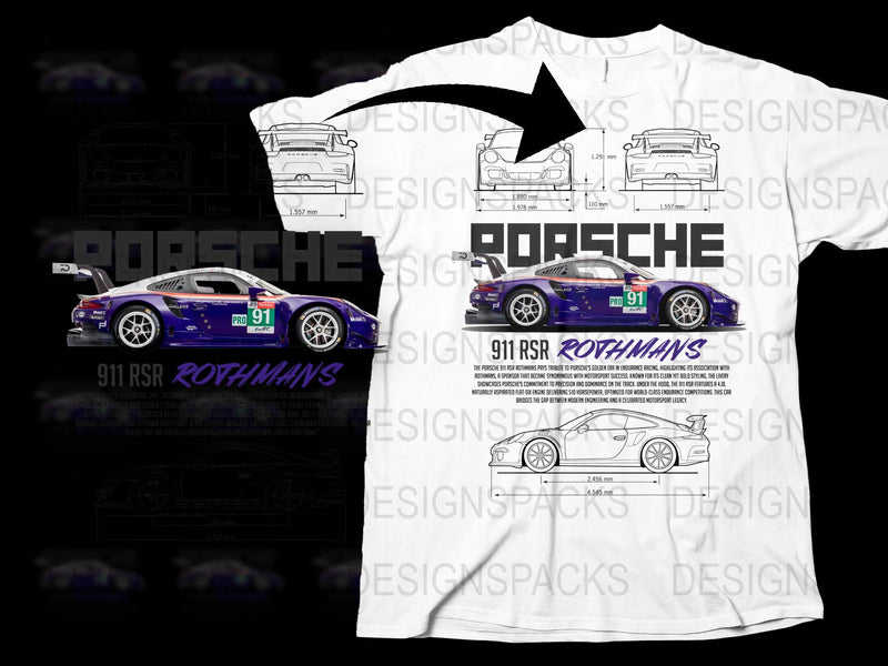 Porsche 911 RSR Rothmans Motorsport Blueprint Graphic Png Digital Download