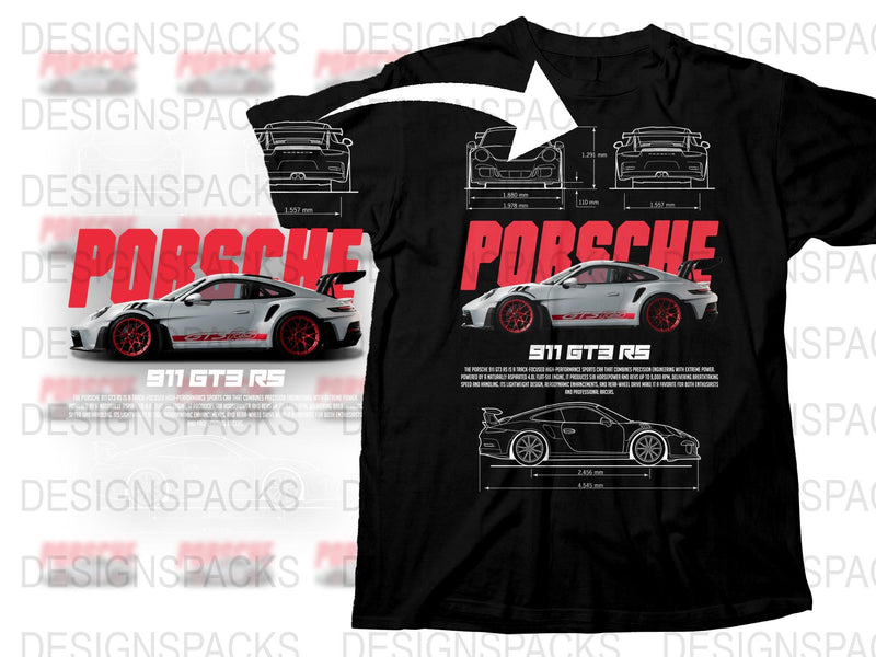 Porsche GT3 RS Automotive Graphic Design Fan Png Digital Download