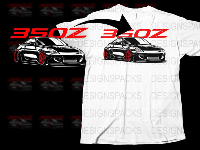 Featuring a stylish sleek black sports car design with red accents. Perfect for car enthusiasts who appreciate the bold look of the iconic 350Z.