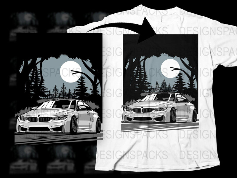 Sleek Stylish Car in Moonlit Forest Png Digital Download