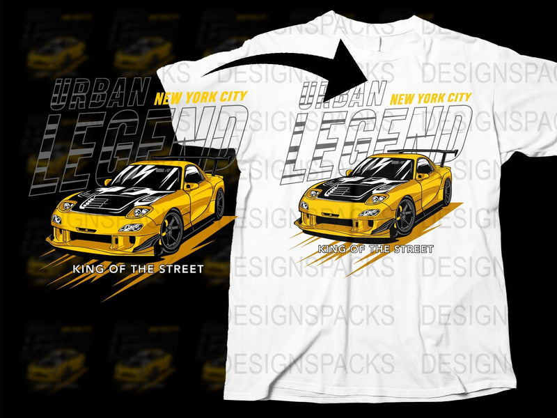 Show your love for street racing with this Urban Legend New York City King of the Street Png Digital Download featuring a sleek car design.