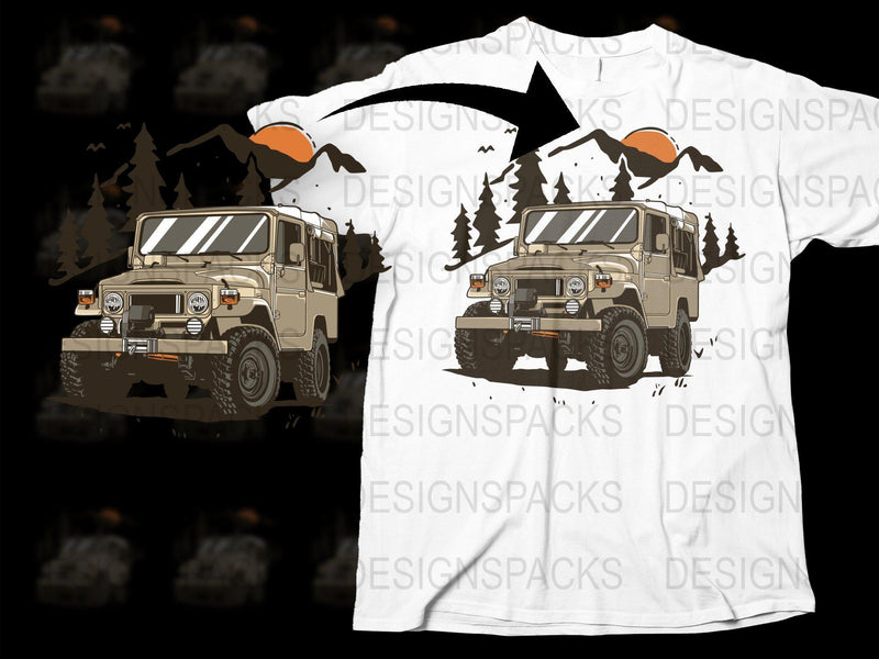 Embrace your adventurous spirit with this vintage off-road SUV graphic Png Digital Download. Ideal for outdoor enthusiasts who love exploring rugged terrain and mountains.
