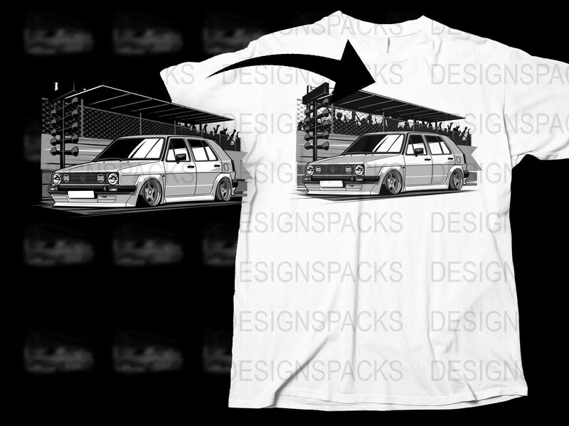 VW Golf Retro Racing Inspired Car Lovers Png Digital Download