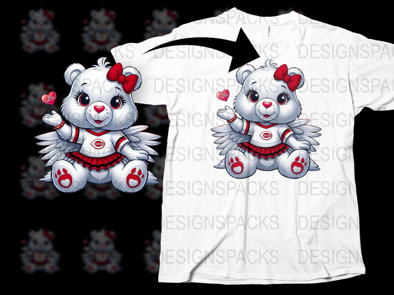 Adorable Cincinnati Reds Angel Bear Graphic Png Digital Download