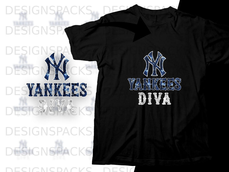 Yankees Diva Sparkle T-Shirt PNG Digital Download