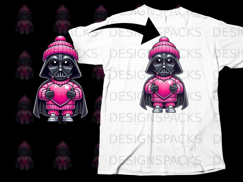 Baby Darth Vader Valentine with Pink Heart and Beanie Png Digital Download