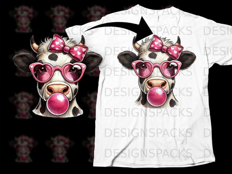 Bubble Gum Cow With Hearts Bow Pink Glasses Image Png Digital Download
