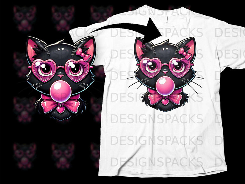 Cartoon Cat With Heart Glasses and Bubble Gum Png Digital Download