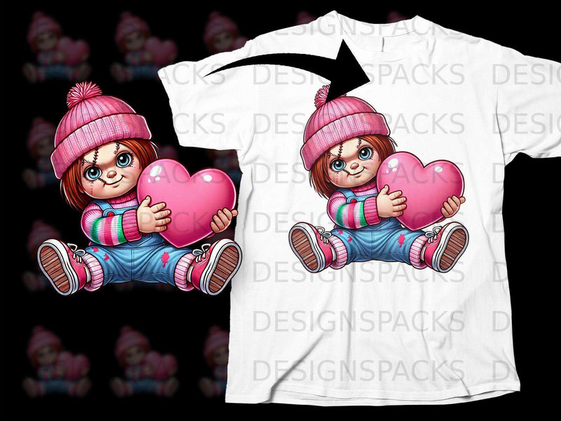 Cute Chucky with Pink Heart Valentine's Day Design Png Digital Download