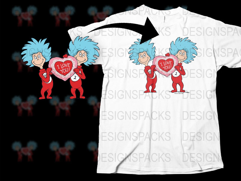 Dr. Seuss Thing 1 and Thing 2 I Love You Png Digital Download