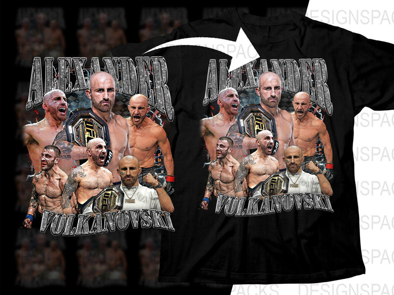 Show your support for Alexander Volkanovski with this dynamic MMA fighter t-shirt. This design features an action-packed collage celebrating his reign as a UFC champion.