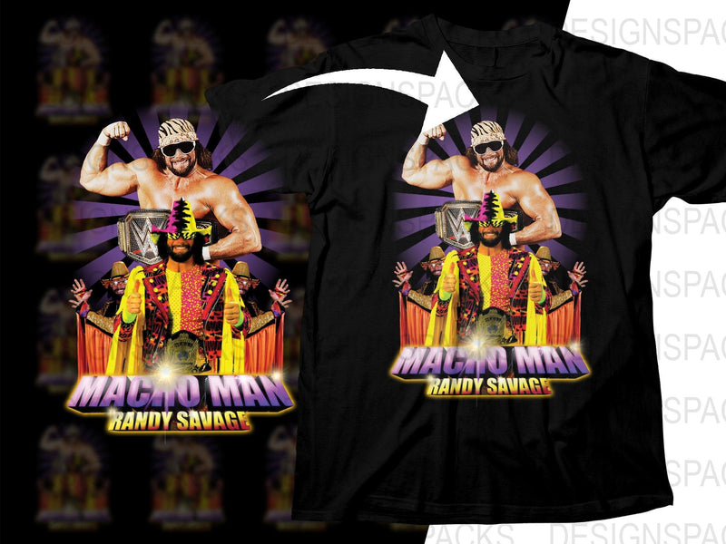 Celebrate the iconic wrestler Macho Man Randy Savage with this vibrant graphic T-Shirt. Perfect for wrestling fans and collectors alike.