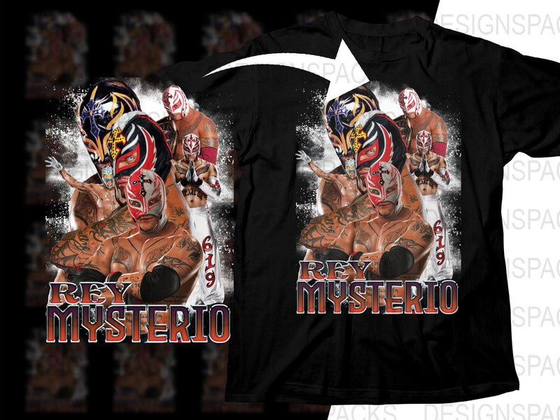 Discover the ultimate Rey Mysterio Wrestling Mask Collage T-Shirt featuring dynamic poses of the iconic wrestler. Perfect for any wrestling fan.