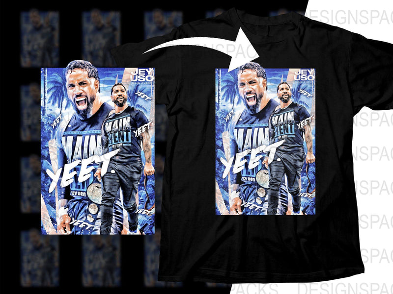 Show your love for wrestling with this dynamic Jey Uso Main Event graphic print T-Shirt. Stand out with Yeet design and make a bold statement.
