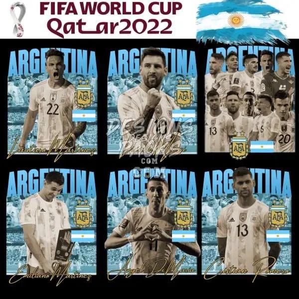 Looking for amazing designs for your T-shirt business? Check out our pack of 12 Argentina World Cup Qatar 2022 designs in PNG format! Perfect for use with DTF & DTG printing, our designs are ready to print with a resolution of 300 DPI.