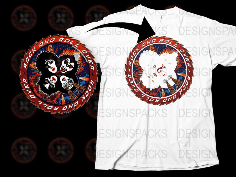 Rock and Roll Over KISS Logo Vintage Graphic Png Digital Download
